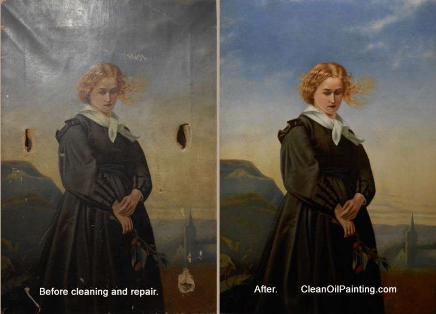 This is especially evident in paintings which have never been varnished. Cleaning and nourishing the paint surface, followed by varnishing, can restore the colors to reflect the artist's original vision.