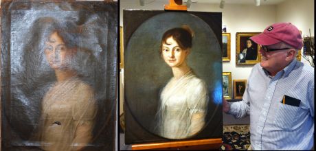 Restored Early 19th Century portrait with collector Lawrence Branagan.